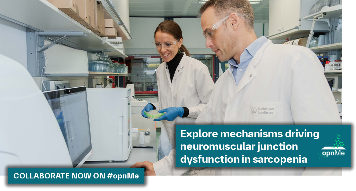 Sarcopenia, the progressive loss of muscle mass and function, significantly impacts mobility and quality of life, especially in aging populations and individuals with chronic conditions like diabetes and CKD. While much is known about muscle-intrinsic mechanisms, the neuromuscular junction (NMJ) has emerged as a critical yet underexplored site of dysfunction in sarcopenia. The molecular and cellular drivers of NMJ degeneration remain poorly understood, presenting a major gap in the quest for effective interventions. Advancing our understanding of NMJ biology could pave the way for novel therapeutic strategies to preserve neuromuscular integrity. Researchers are invited to address this urgent need by exploring NMJ degeneration mechanisms and identifying targets for early intervention. To join Boehringer Ingelheim and contribute to our sarcopenia research, we are inviting scientists to answer the following question: