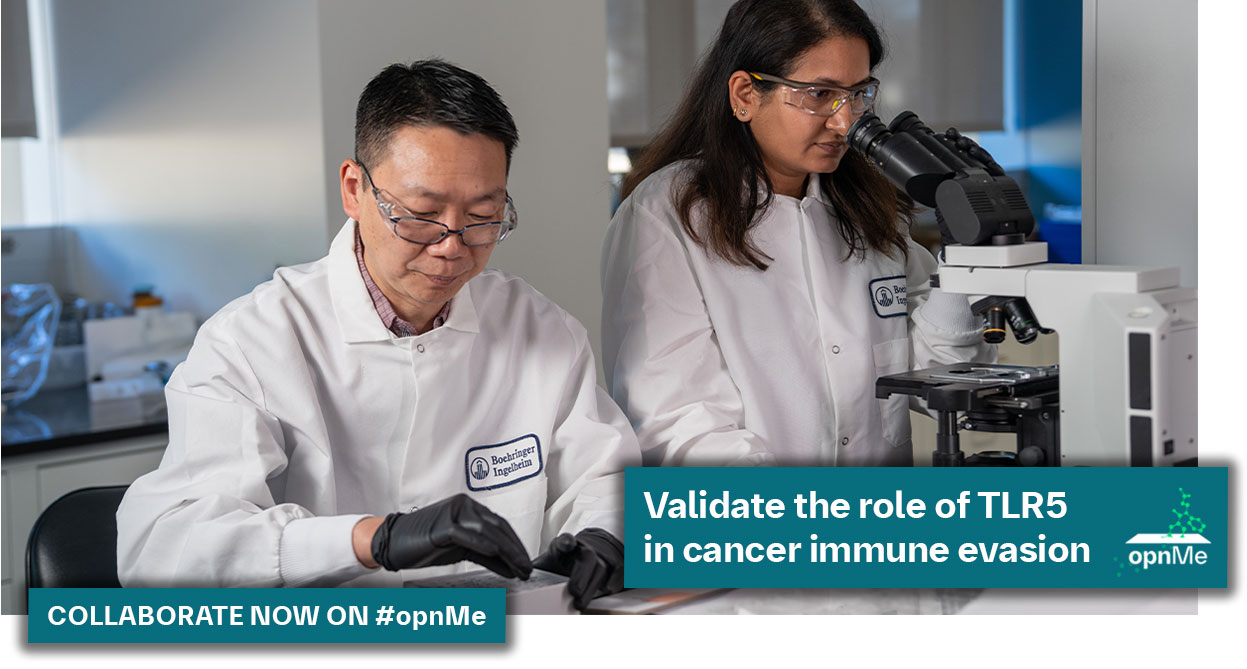 We invite hypothesis-driven proposals that investigate the seemingly opposing roles of TLR5 in inflammatory processes in the context of oncology indications. As an incentive specific to this opnMe call, we offer exclusive access to custom biological tools and reagents, in particular well-characterized TLR5 antagonists, from Boehringer’s research activities to validate submitted hypotheses.