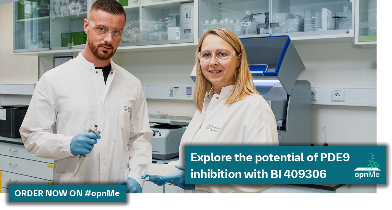 Our PDE9 inhibitor, BI 409306 (osoresonontrine), is a highly potent and selective molecule with excellent brain penetrance and oral bioavailability. It is well-suited for exploring the role of PDE9 in various indications. To support further advancements in PDE9 research, we offer BI 409306 and its inactive analog BI-8777 free of charge, with full ownership of your results. We encourage you to publish your findings and contribute to the growing understanding of PDE9 inhibition.