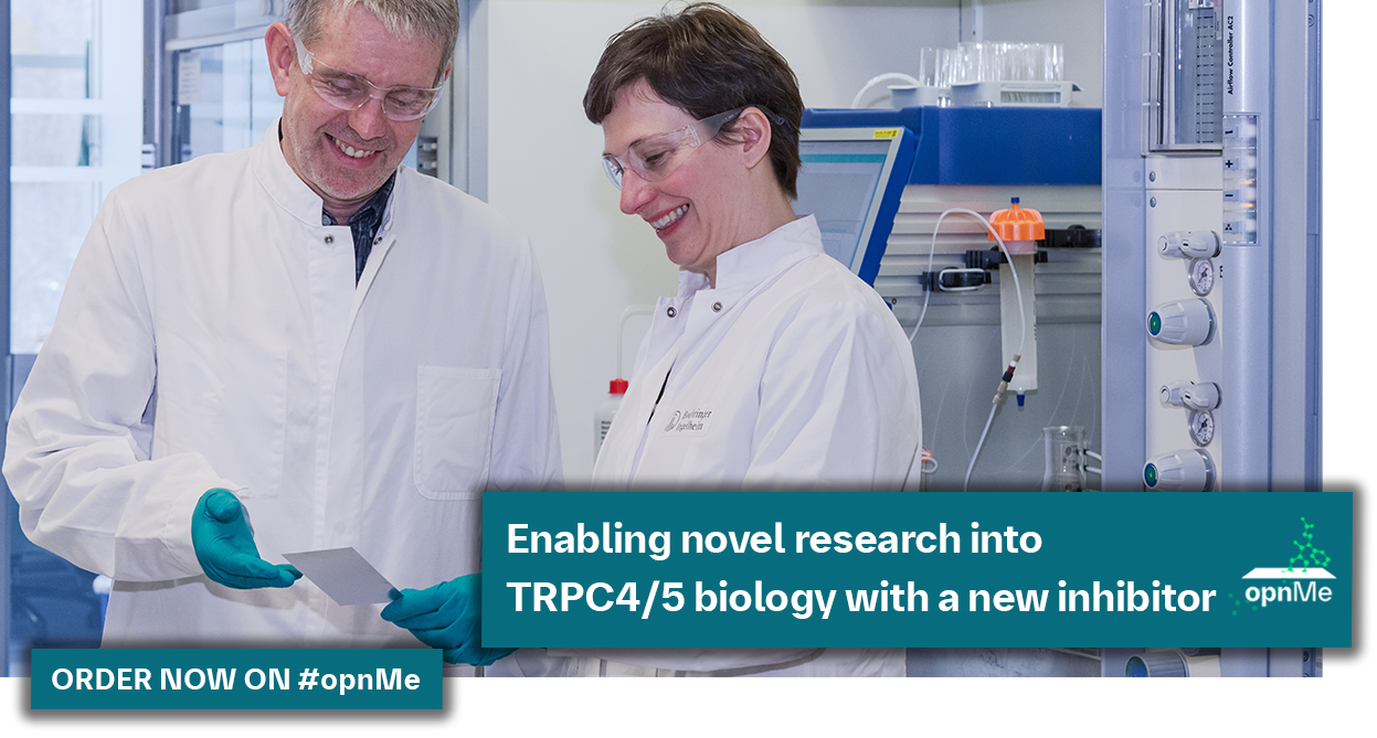 To advance research on TRPC4/5 biology beyond neurological dysfunctions and disease, we are offering HC‑070, a potent and highly selective inhibitor of TRPC4 and TRPC5, free of charge. Researchers will retain full ownership of their data, and we encourage publication of resulting findings to further strengthen the growing body of knowledge in this field.